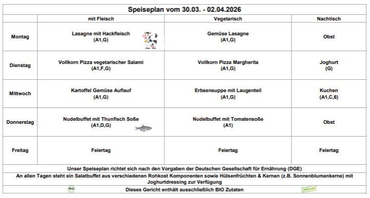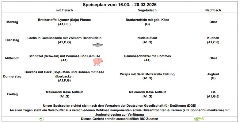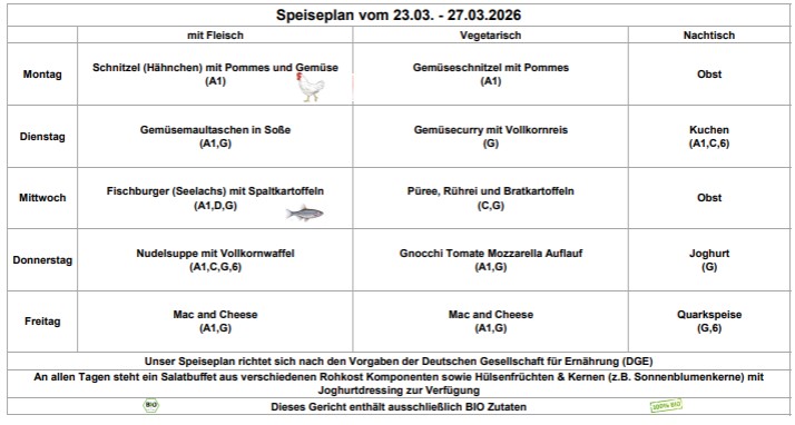 Achtung: Im Krankheitsfall kann bereits bestelltes Essen nur über das Sekretariat zusammen mit der Krankmeldung abbestellt werden. Sonstige Stornierungen müssen in Rechnung gestellt werden (Tel.: 06872/92196-0).