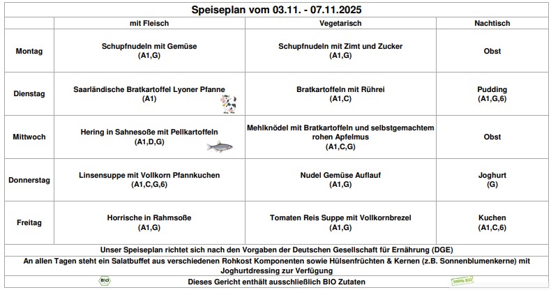 Achtung: Im Krankheitsfall kann bereits bestelltes Essen nur über das Sekretariat zusammen mit der Krankmeldung abbestellt werden. Sonstige Stornierungen müssen in Rechnung gestellt werden (Tel.: 06872/92196-0).