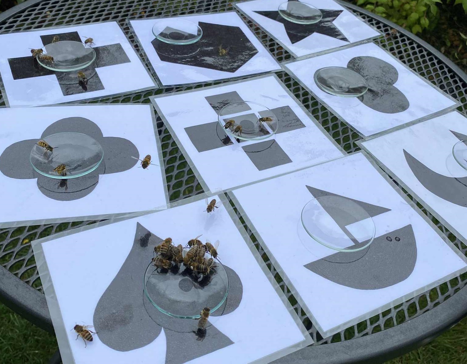 Im Rahmen des Seminarfachs Bienenkunde 13 wollten die teilnehmenden Schülerinnen und Schüler nun herausfinden, wie die Bienen auf von den Teilnehmenden selbst gestaltete, unterschiedliche Muster reagieren.