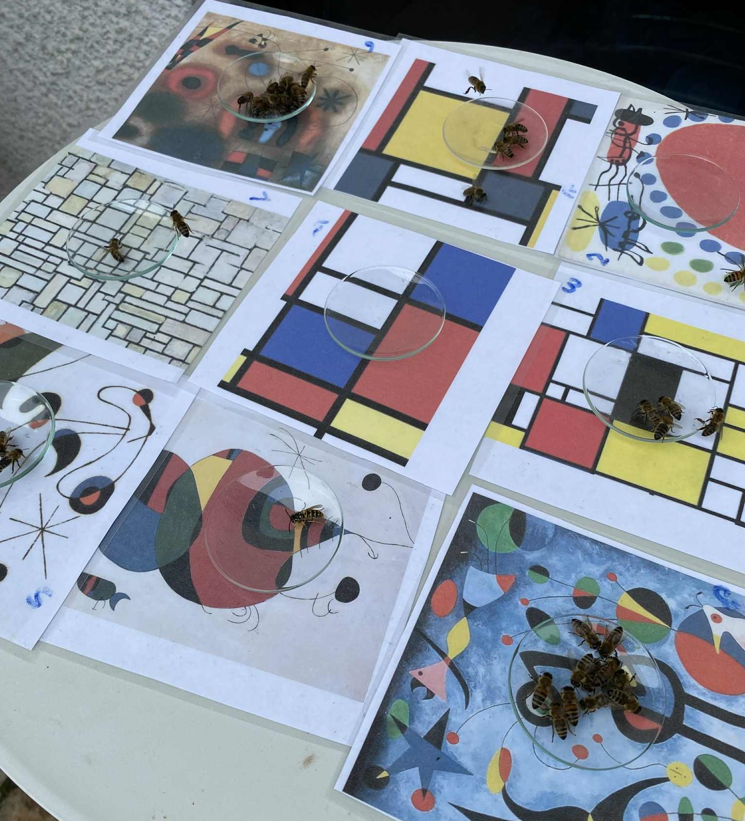 Hierzu stellten die Schüler die Hypothese auf, dass Bilder von Mondrian seltener angeflogen werden, da die für den Künstler typischen rechteckigen Muster und Formen selten in der Natur vorkommen. Im Laufe des Versuchs konnte die Hypothese zwar weder bestätigt noch widerlegt werden, zwei Tests führten zu keinem nennenswerten Ergebnis. Jedoch führte der dritte Test zu einem Ergebnis. Hier flogen auf ein Gemälde von Mondrian dressierte Bienen mit klarer Tendenz häufiger das Mondrian-Gemälde an als das daneben liegende Miró-Gemälde. Wurden die beiden Gemälde-Karten in ihrer Lage getauscht, landeten dennoch tendenziell mehr Bienen auf der Mondrian-Karte. Die Erkenntnis: Die Bienen können nicht unbedingt die beiden Malstile der Künstler voneinander unterscheiden, sind aber durchaus in der Lage, ein Gemälde von Mondrian von einem Gemälde von Miró zu unterscheiden.
