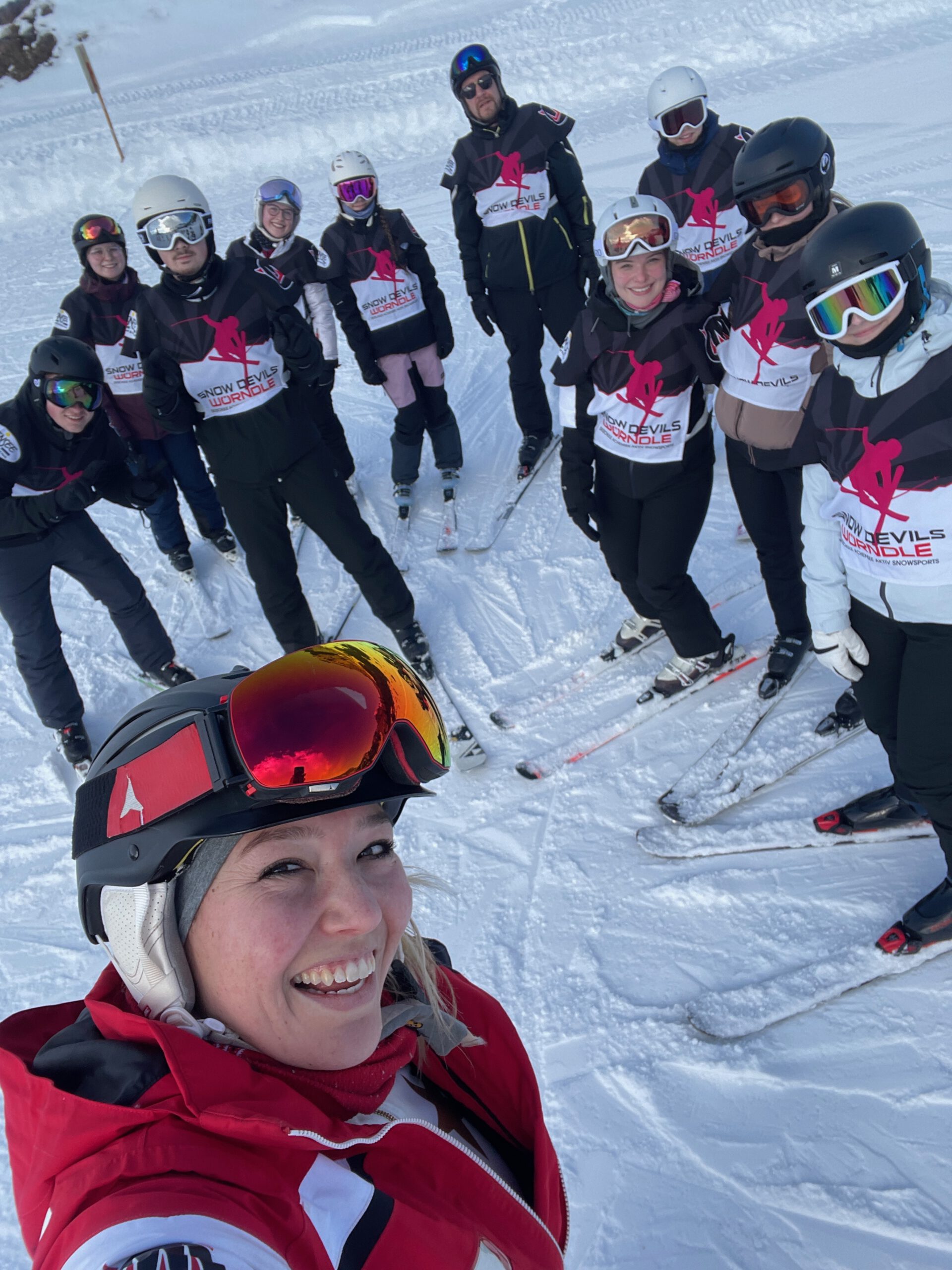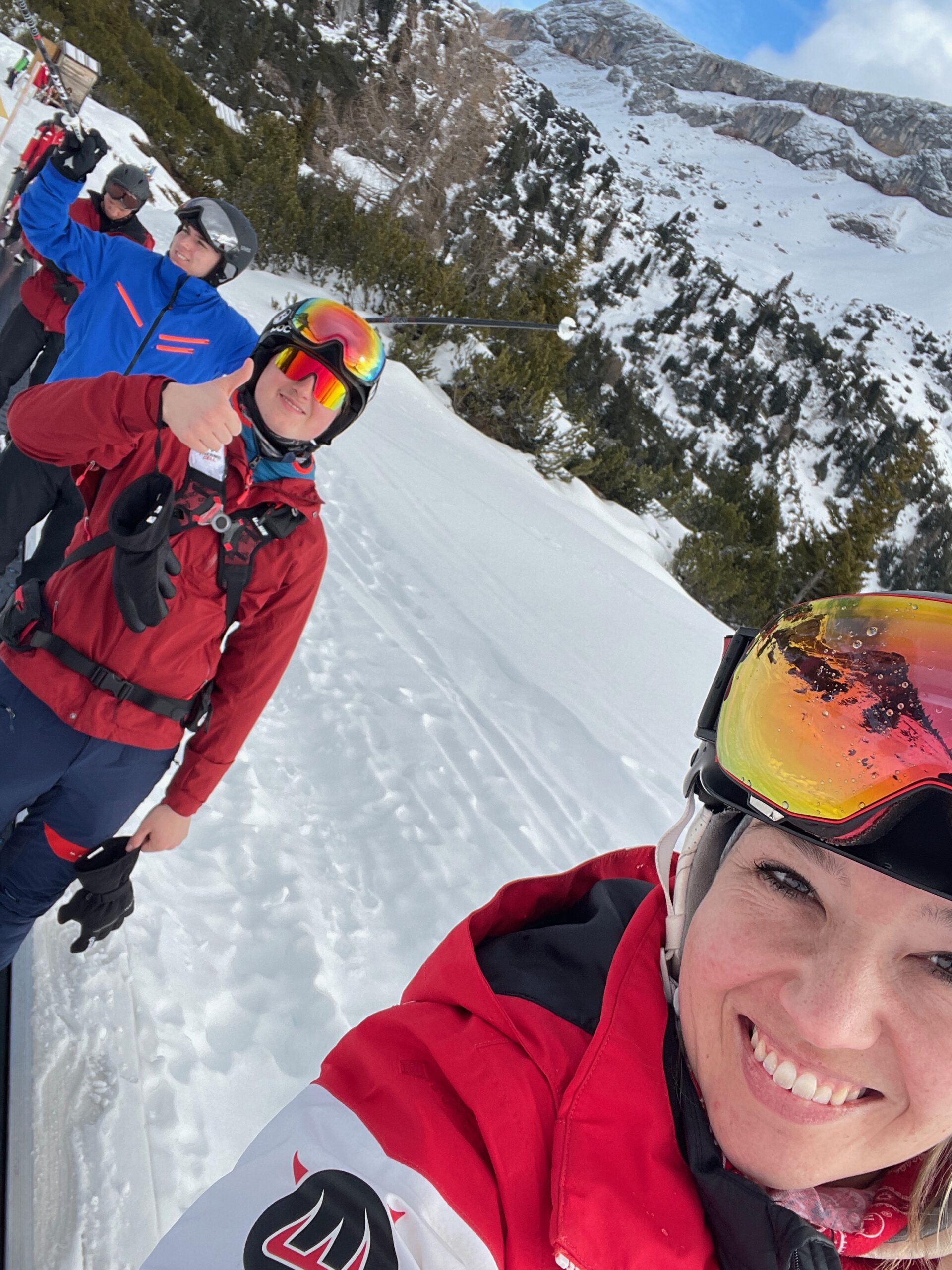 Der erste Skitag war eine Mischung aus Neugier, Respekt – und häufigerem Kontakt mit dem Schnee als mit der Piste. Begriffe wie „Pizza“ und der Klassiker „Hände auf die Knie!“ gehörten schnell zum Tagesablauf. Besonders ein Schüler sorgte dafür, dass regelmäßig überprüft wurde, ob er und seine Skier noch vollständig anwesend waren.